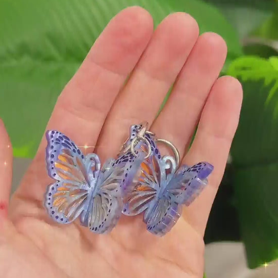 3D Iridescent Butterfly Hoops - 2025 Advent Calendar - Handmade Acrylic & Metal Earrings